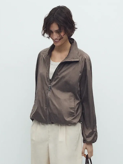 Chaqueta corta con forro de tejido repelente al agua hecho con fibras recicladas.