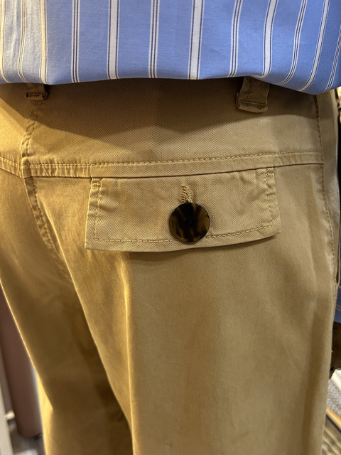 Bolsillos simulados en la parte de atrás con solapa y botones
