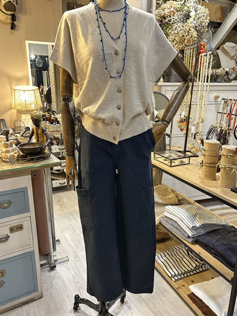 Pantalón recto tobillero de loneta de algodón en marino